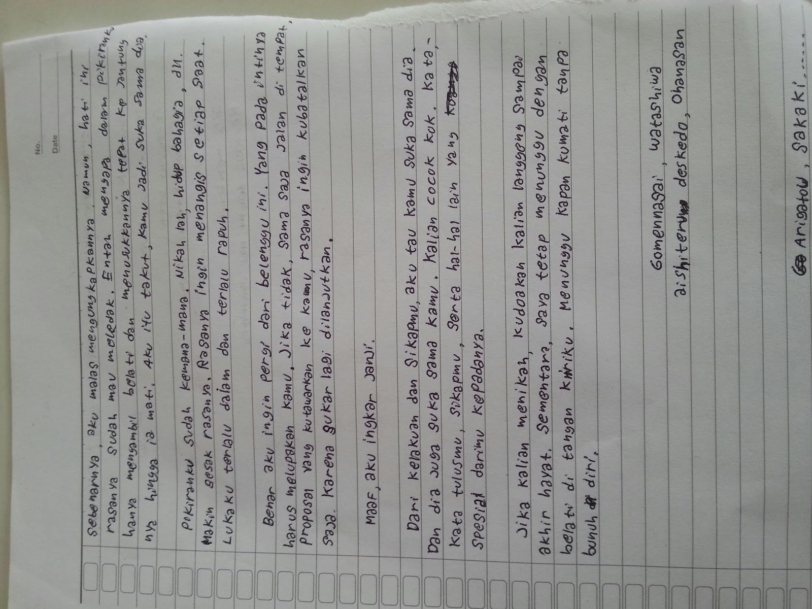 Makin hari, rasa cinta berubah menjadi cemburu yang meledak ledak. Sampai ku tak tahan melihatnya dan jatuh sakit. Saya sempat menulis surat yang berisi seperti di gambar...